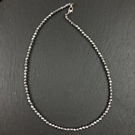 Délka šňůry - 44 cm, kuličky hematitu o průměru 4 mm.