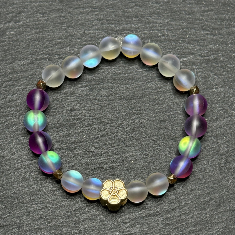 Krásný originální náramek vytvořený Achátem a Andělskou aurou, dozdobený komponenty a kytičkou.